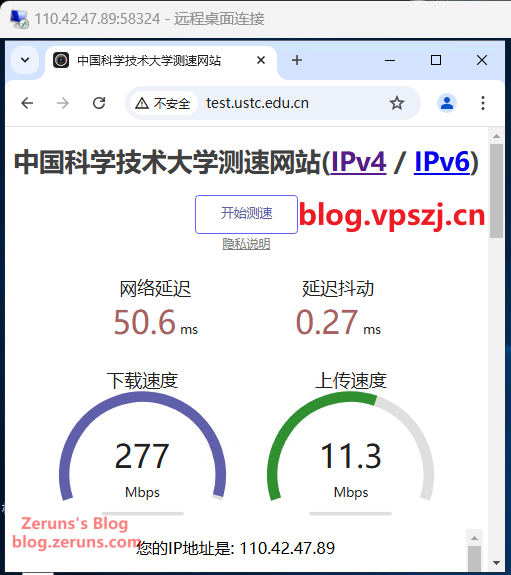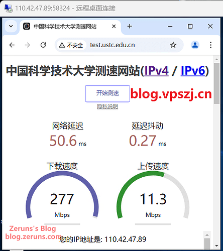 [中科大测速站](http://test.ustc.edu.cn/)测得:下载速率277Mbps,上传速率11.3Mbps。