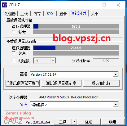 **单核 573.2 分,多核 2344.6 分,多线程倍率 4.09**