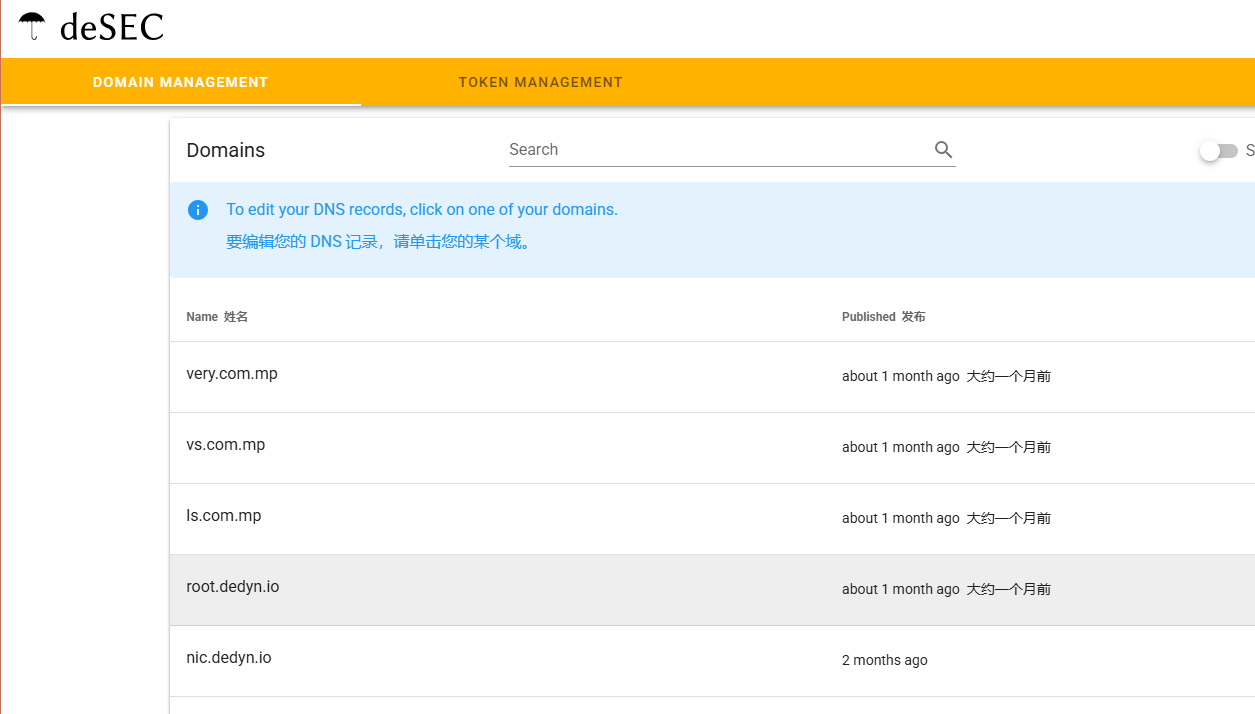 dnssec、cloudns都只支持管理一个域名,且都被自带的免费域名占用;