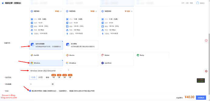 操作系统选Windows-Server-2022,然后点击立即购买。