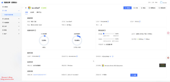 等待服务器创建完成后点击管理,进到服务器的控制台,接着就可以看到服务器的信息了,在这里重装/切换系统等。