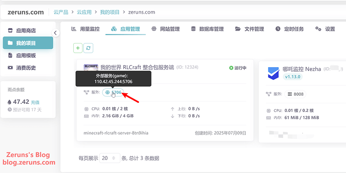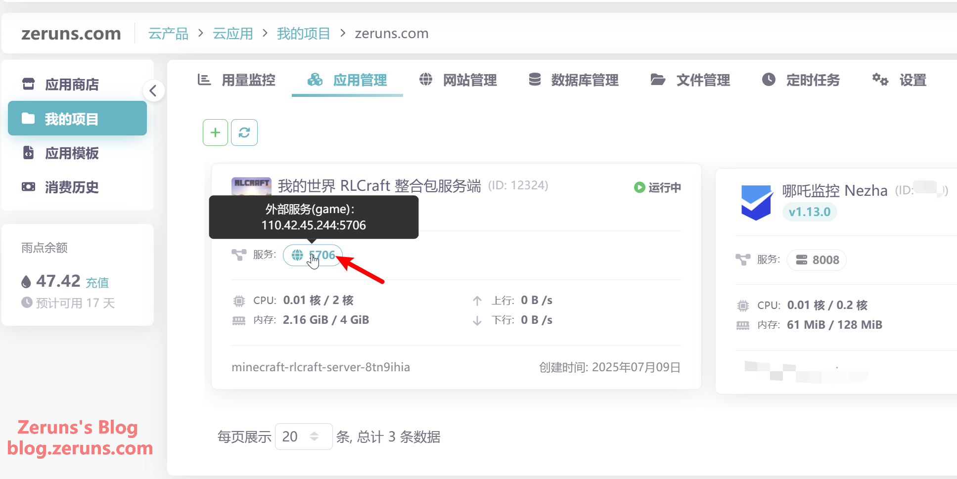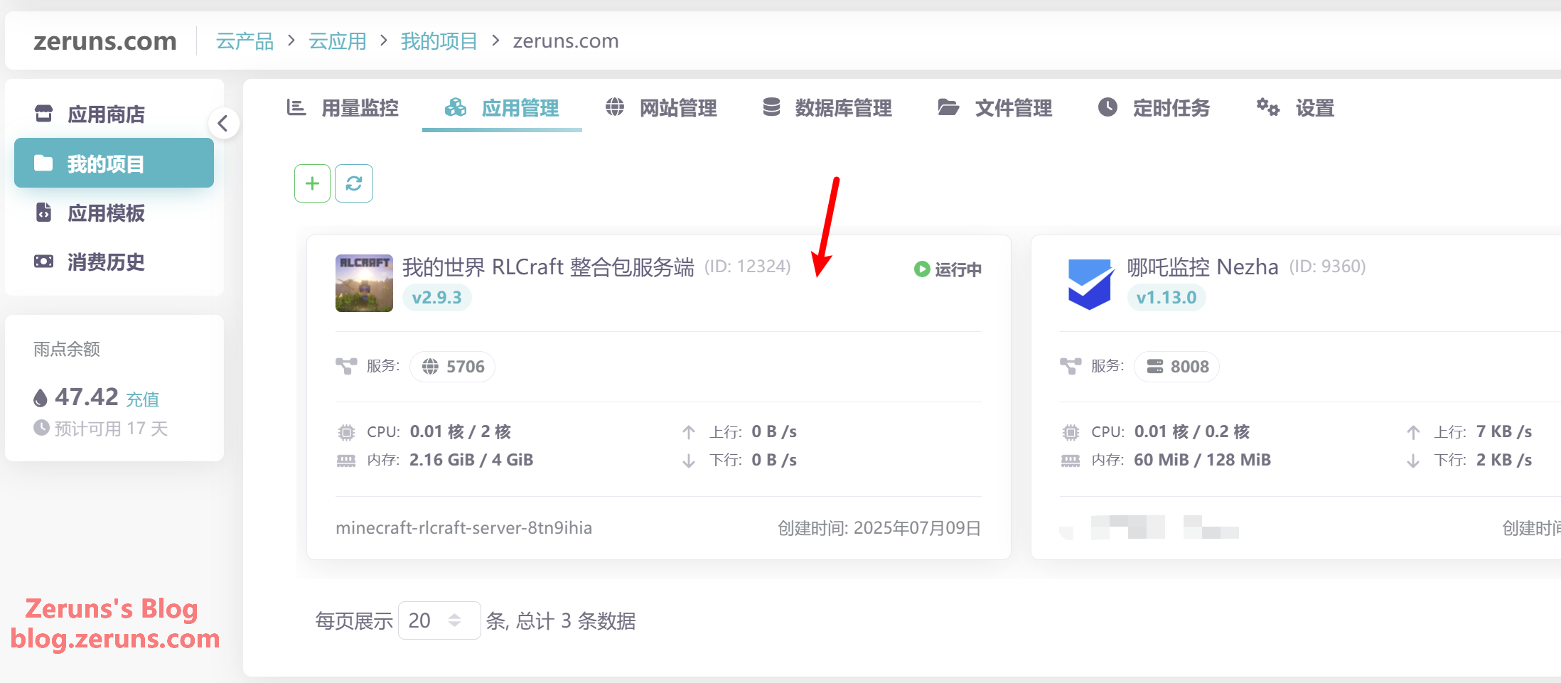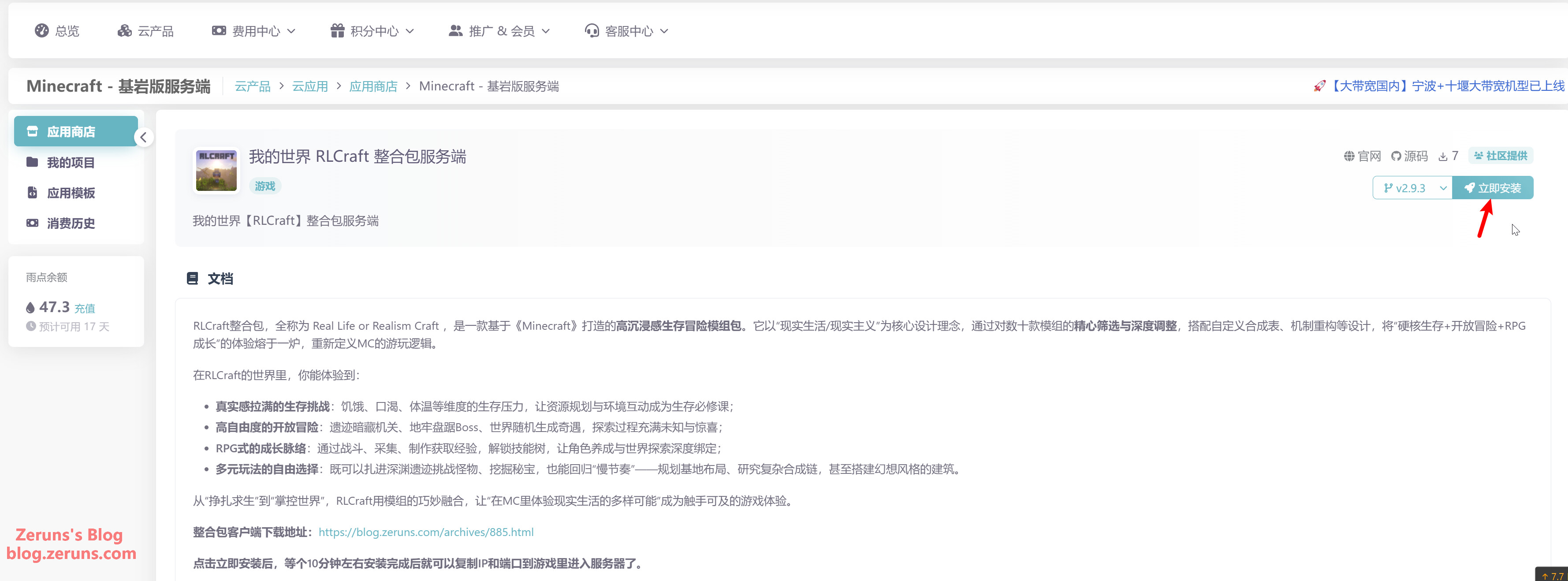 访问这个链接直接跳转到RLCraft服务端应用的安装页面(AFF):https://app.rainyun.com/apps/rca/store/6674/zeruns_?s=nodeloc