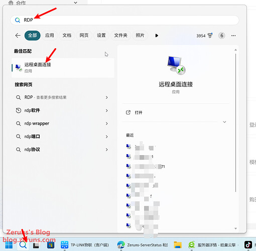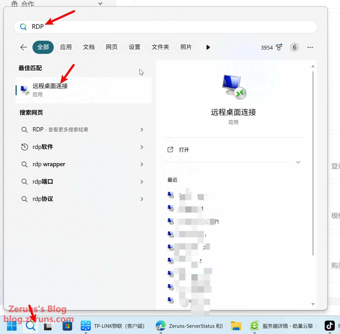打开Windows自带的RDP远程桌面客户端,如果你用的是其他系统就得下载一个RDP软件。