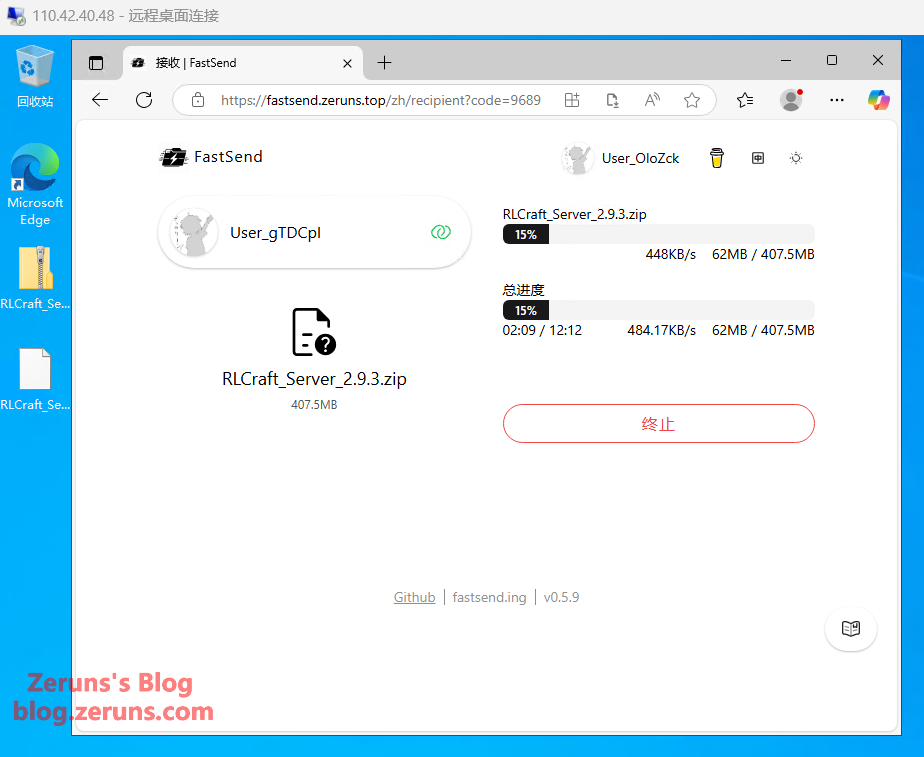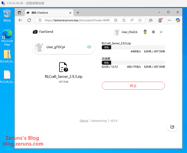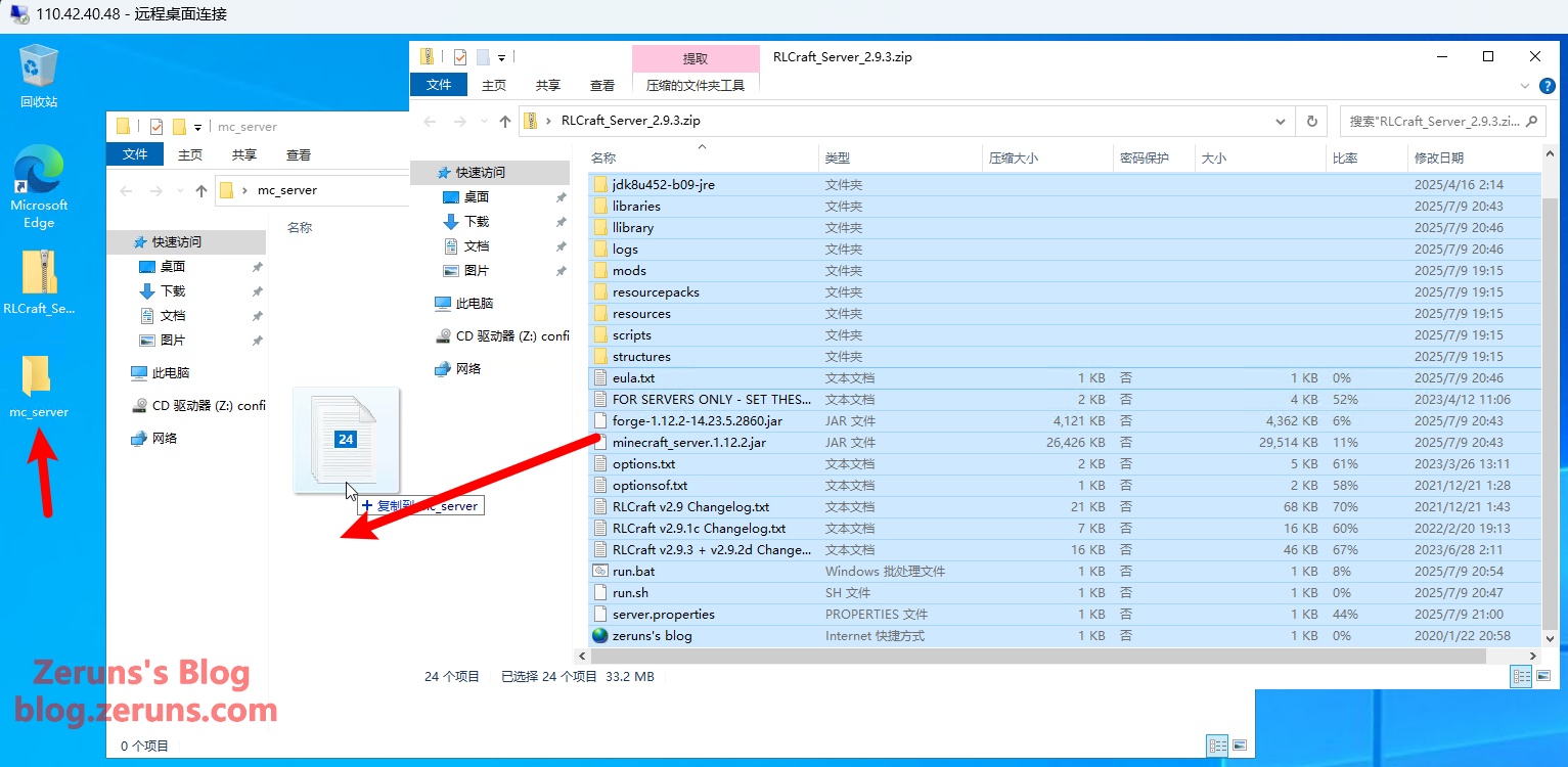在服务器上下载好RLCraft的服务端压缩包(上面的下载链接复制到服务器里用浏览器打开),也可以先下载到自己电脑上再传到服务器上,RDP一般可以直接将文件复制粘贴进去。