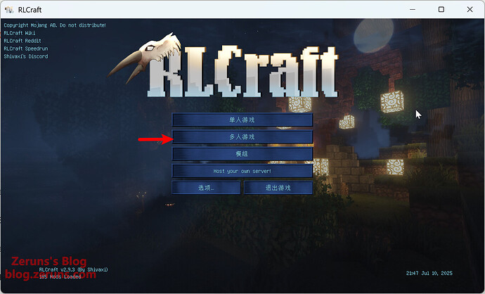 首先需要下载好《RLCraft》的服务端和客户端,可以去CurseForge下载,也可以从我下面的链接下载(我提供的已加入汉化补丁)。