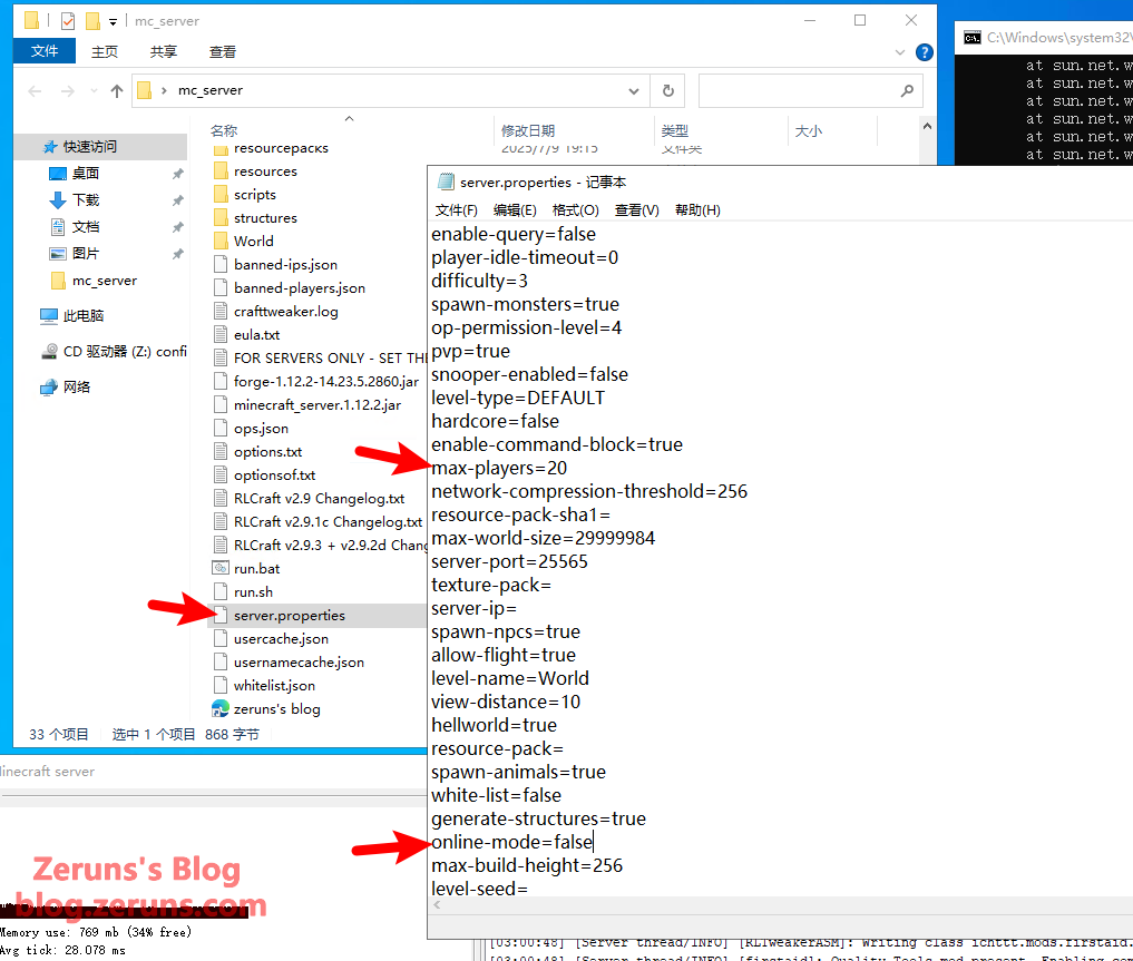 在服务端目录里找到 server.properties 文件,用记事本打开。