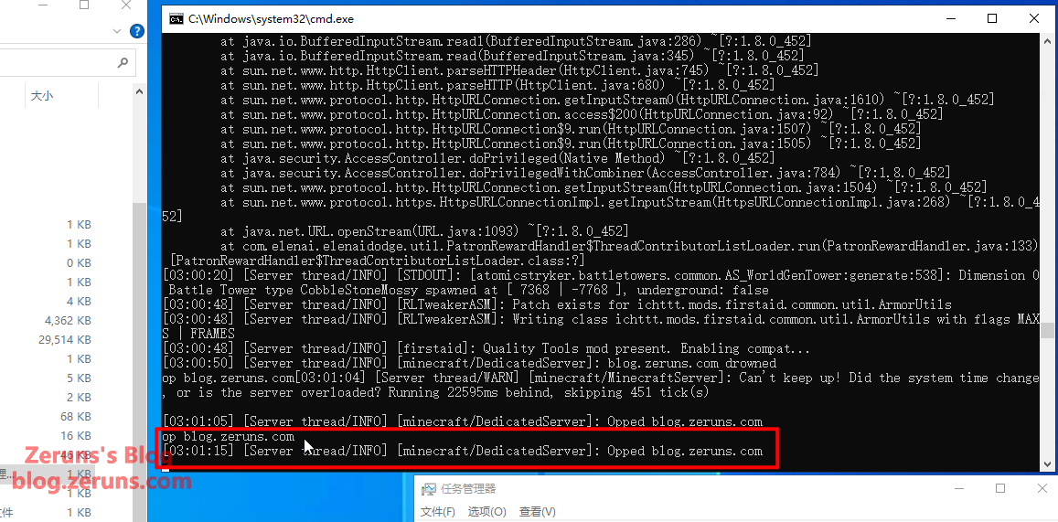 在CMD命令框里输入指令并回车就行,比如我要给我自己(用户ID:blog.zeruns.com)OP权限就输入 op blog.zeruns.com ,在这里输入指令无需加 / 。