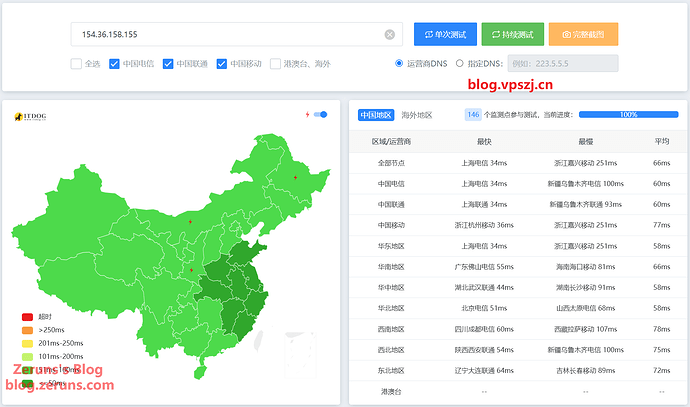 以下为IPV4网络测试,若无IPV4网络则无输出