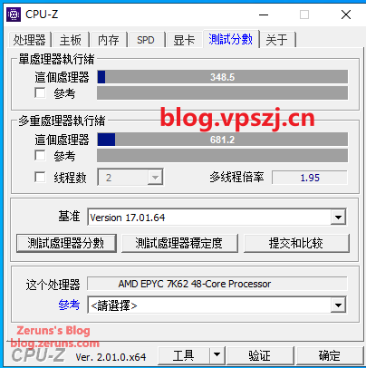 单核 348.5 分,多核 681.2 分,多线程倍率 1.95