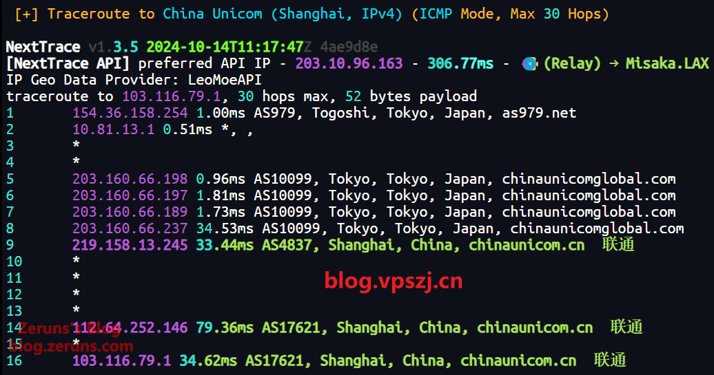 回程到上海联通,走联通AS10099和AS4837线路直连到境内。