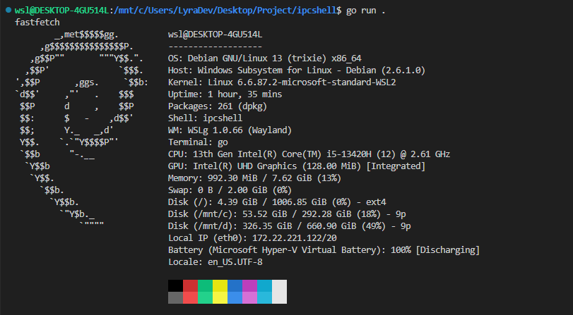 0s → Start server goroutine, listening on "ipcshell"