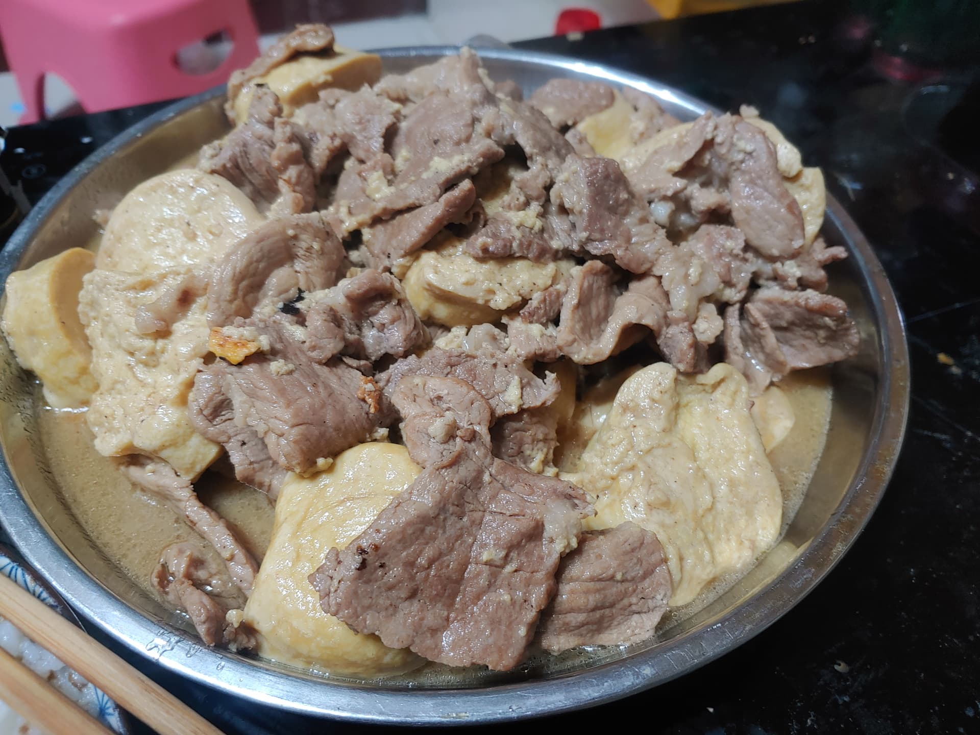 黄的是豆腐泡吗,可以把肉剁馅,加葱姜沫调料,豆腐泡挖个洞,塞里面,煮大白菜汤放进去。歪瑞古德。