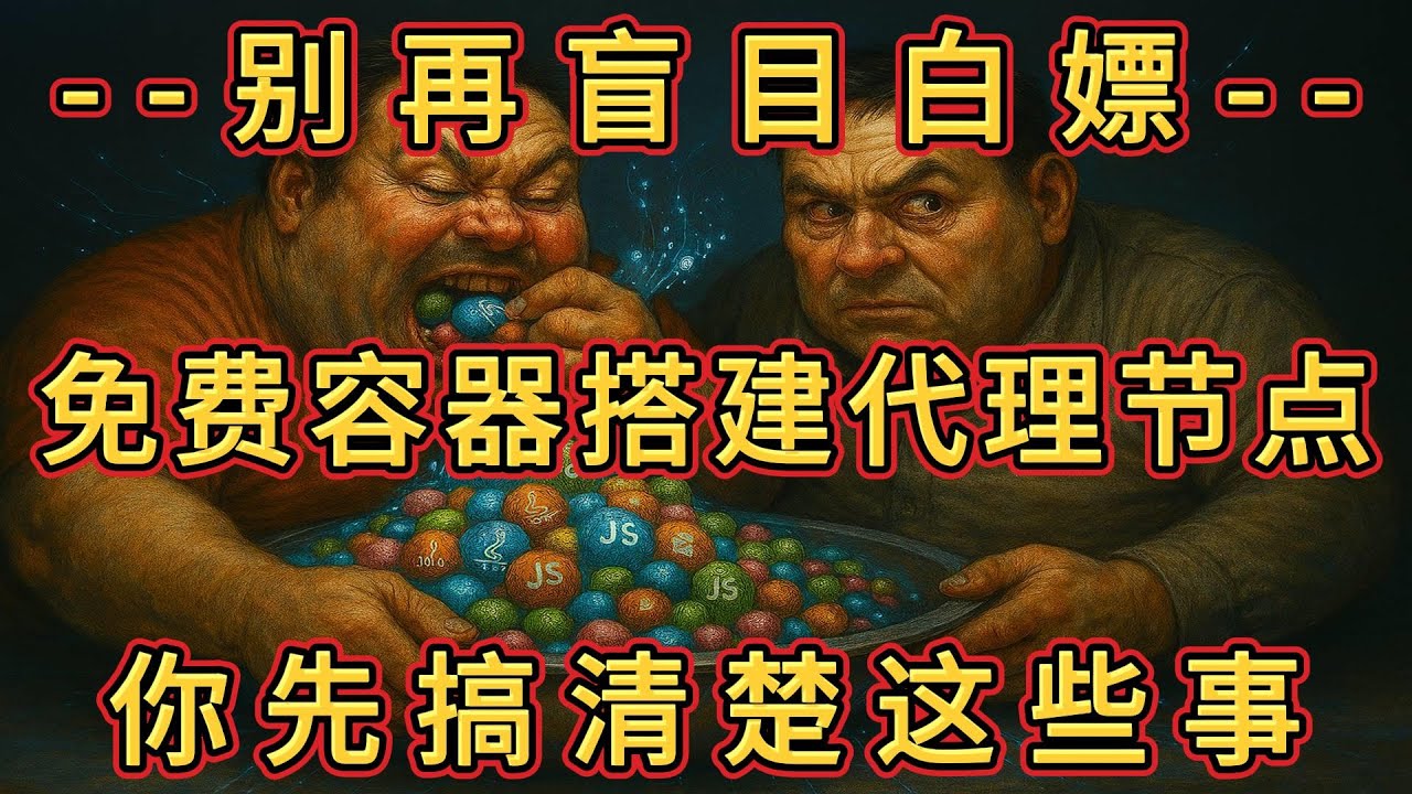 白嫖免费容器搭建代理节点的正确心态:免费是糖,糖吃多了会麻木,新手小白树立好心态;免费不是某些人套双标的私货