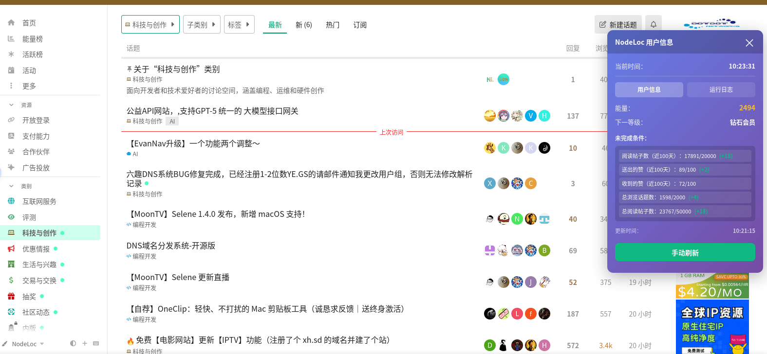 // @description Displays NodeLoc user information and refreshes periodically