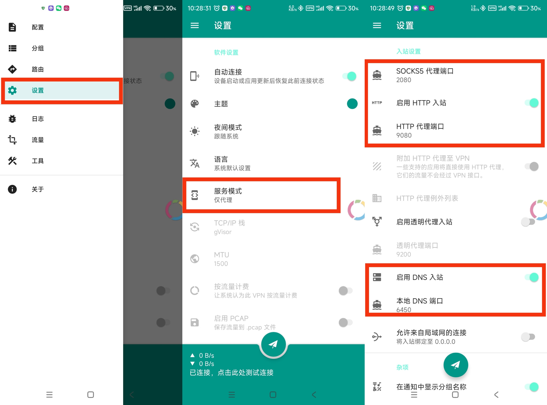 入站设置中打开启用 HTTP 入站和启用 DNS 入站。 -