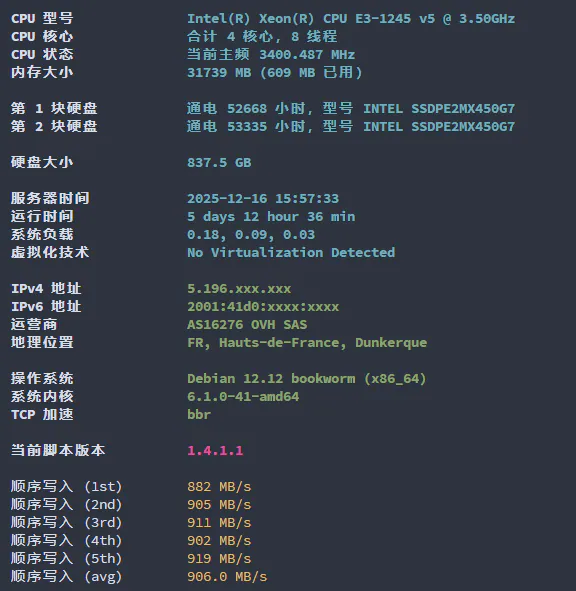 [已出]带免税号出OVH CA区法国KS-LE-1 2x480G 32G内存中奖带核显独服