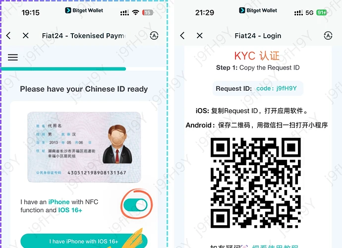 9)依图操作,进入到验证页面后,复制 Request ID,打开KYC认证应用软件,KYC认证后,回来点击“Click when you finish it”