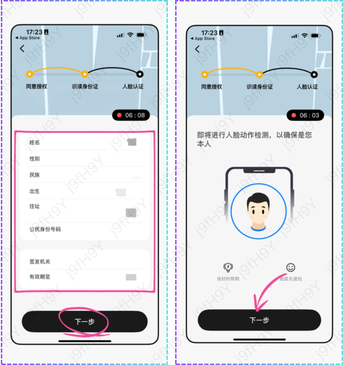 13)信息显示后,确认无误点击“下一步”;再次点击“下一步”完成人脸识别