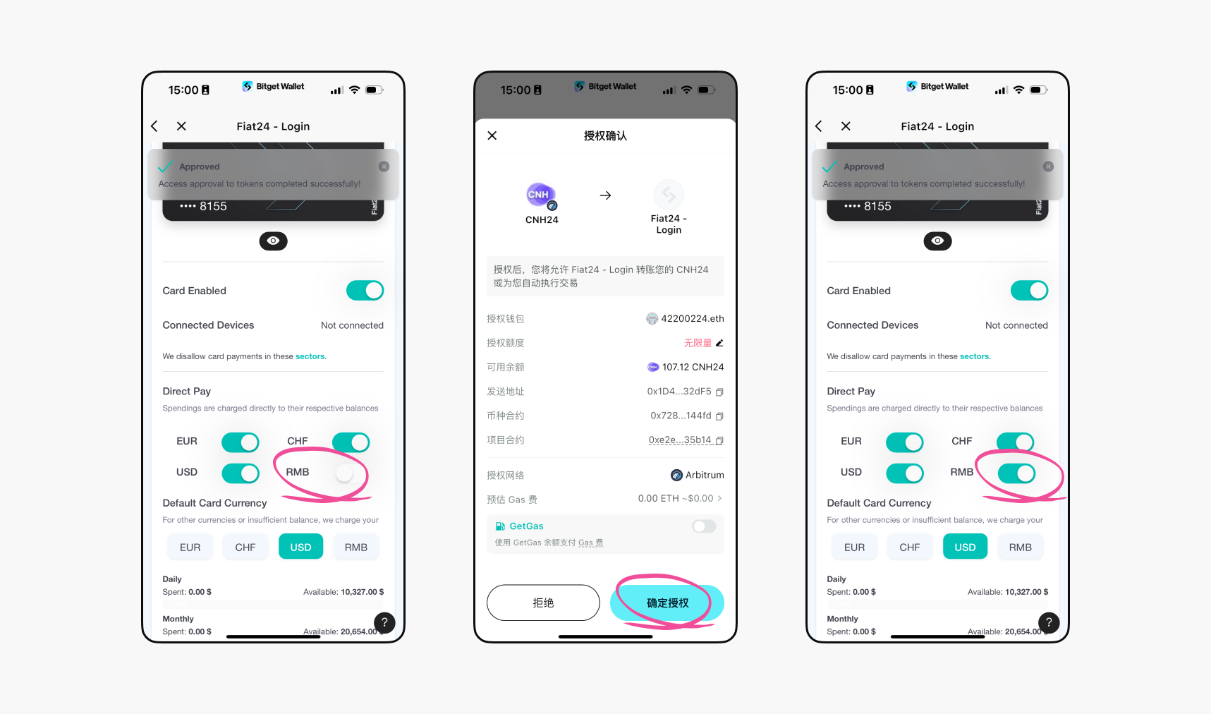 目前,仅支持充值 USDC(Arbitrum)。如果你没有 USDC(Arbitrum),可以通过 币安交易所 购买,然后再提取到Bitget Wallet钱包,然后充值卡。
