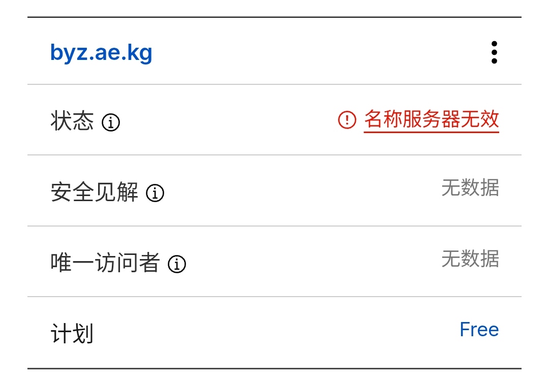ae.kg那边暂时无法修改指向Cloudflare的NS记录(添加*.ns.cloudflare.com会显示不支持)